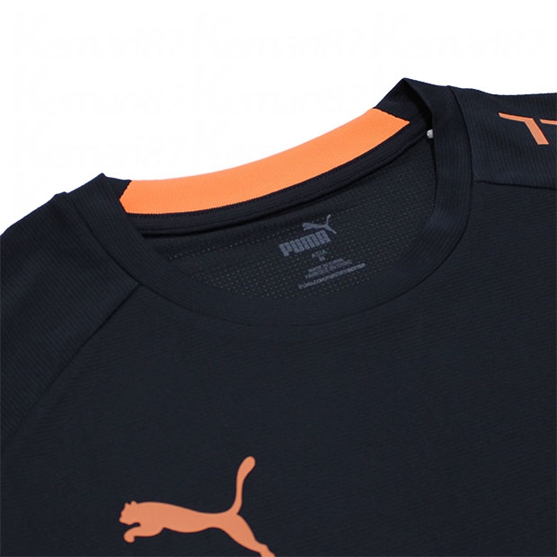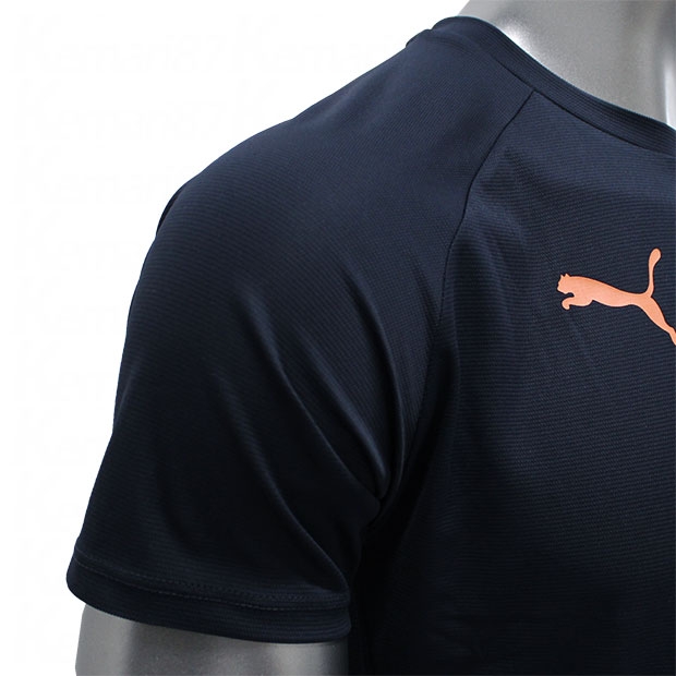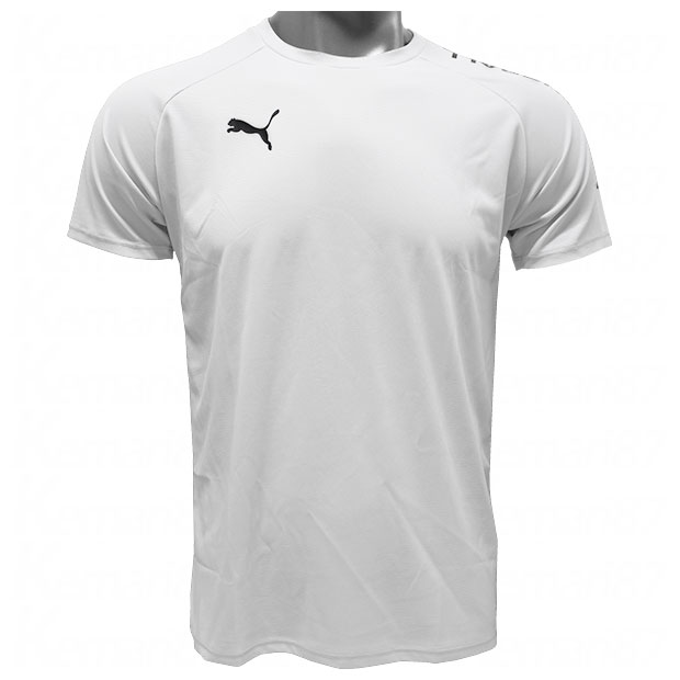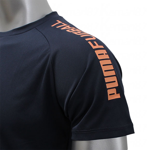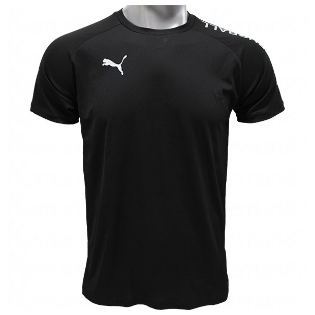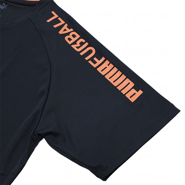 PUMA FUßBALLコレクション。独特なグラフィックポジションの半袖シャツ。吸水速乾性に優れたDRYCELL(ドライセル)を採用。