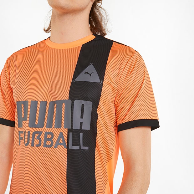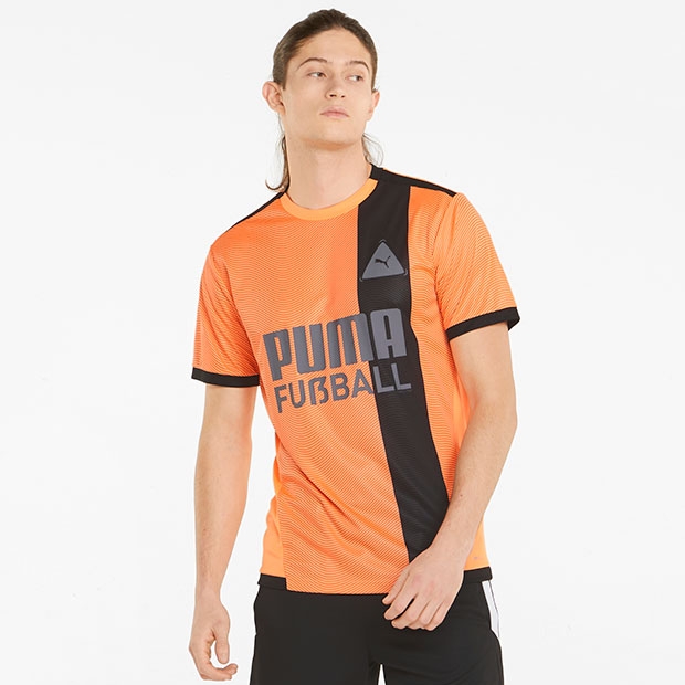 PUMA FUßBALLコレクション。シーズナルグラフィックとビビッドカラーが特徴的。吸水速乾性に優れたDRYCELL(ドライセル)を採用。スリムフィット仕様。