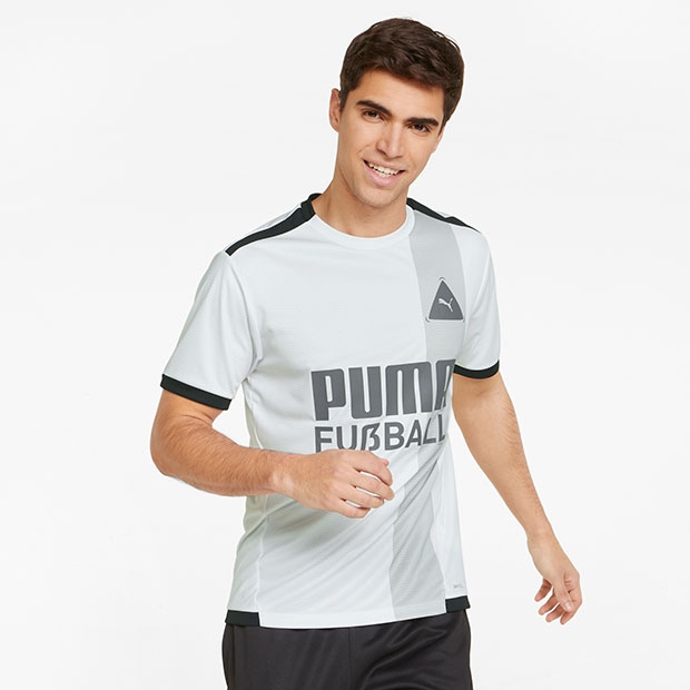 PUMA FUßBALLコレクション。シーズナルグラフィックとビビッドカラーが特徴的。吸水速乾性に優れたDRYCELL(ドライセル)を採用。スリムフィット仕様。