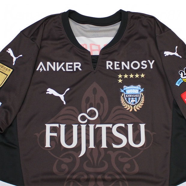 選手着用ユニフォームのオーセンティックモデル。風呂上がりには欠かせないコーヒー牛乳からインスピレーションを得たカラーを採用。川崎市の花であるつつじをベースに温泉マークや、湯、26などで構成されたオリジナルグラフィックを大胆に配置。背面には風呂敷で使用される唐草紋様をアレンジしたグラデーションを採用。夏季の数試合限定で着用予定。大人/メンズ用。
