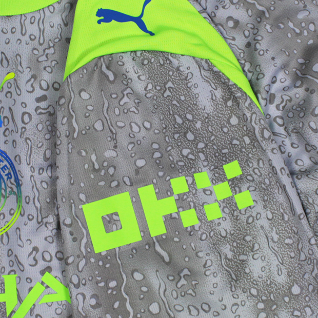 選手着用ユニフォームのレプリカモデル。「マンチェスターの天気」に敬意を表した、雨の日も晴れの日も、シティを愛するすべての人へ捧げる一着。軽量で独自の吸水速乾機能を備えたdryCELL生地を使用。大人/メンズ用。