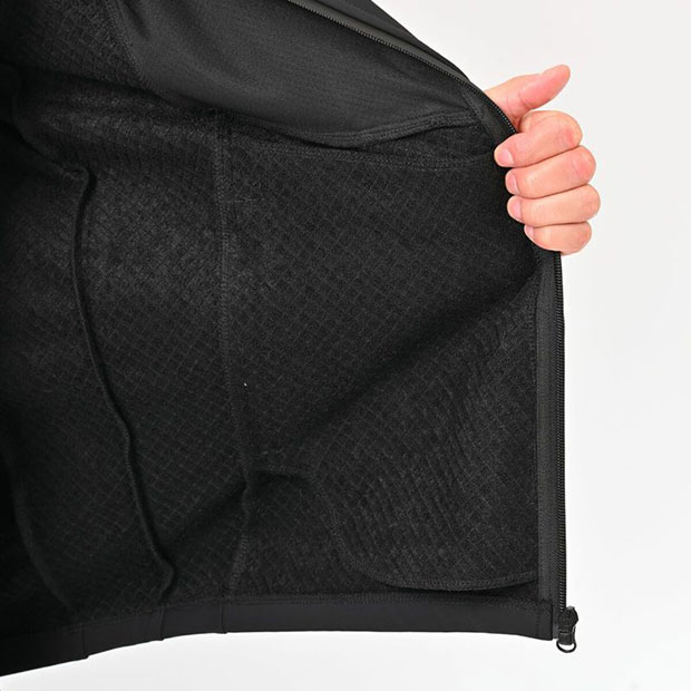 寒い時期のトレーニングに最適な極暖アイテム。表面に防風性とストレッチ性に優れた素材を、裏面に保温性に優れたダイヤ裏毛を使用したボンディング素材を採用。