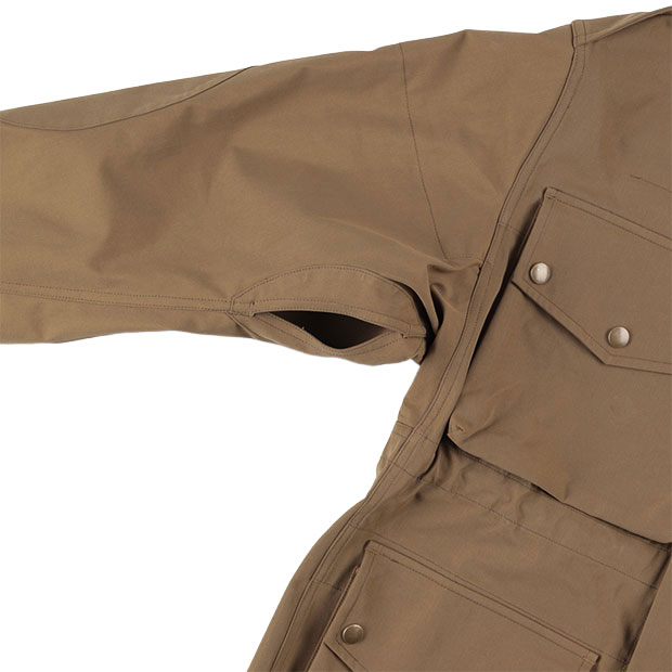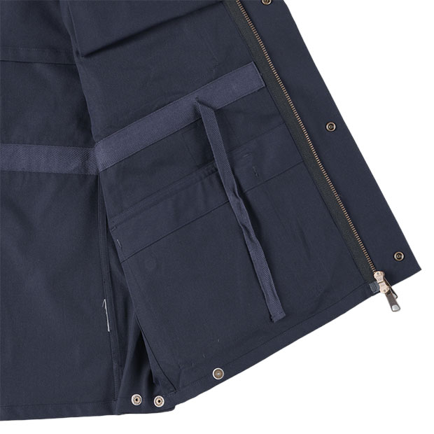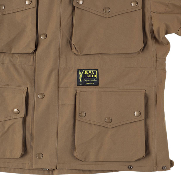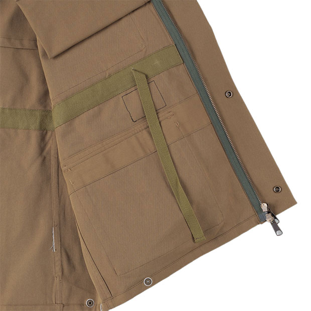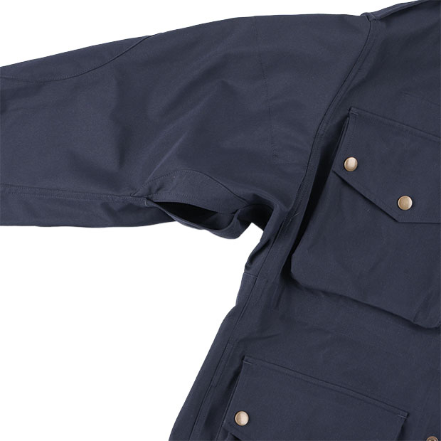 ベルギー軍のデニソンスモックをモチーフにしたミリタリー風ジャケット。ポリエステル素材を使用した、フットサルブランドらしいスポーティな仕上がり。ダブルドットボタン付きの大容量ポケットや脇下のベンチレーション、着丈短めで裾広がりなシルエットなど、細部にまでこだわった一着。レギュラーフィットシルエット。