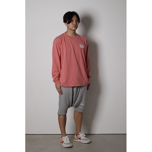 杢糸を使用した落ち着きのある印象のロングスリーブシャツ。シンプルなグラフィックを採用。少し大きめのシルエット。