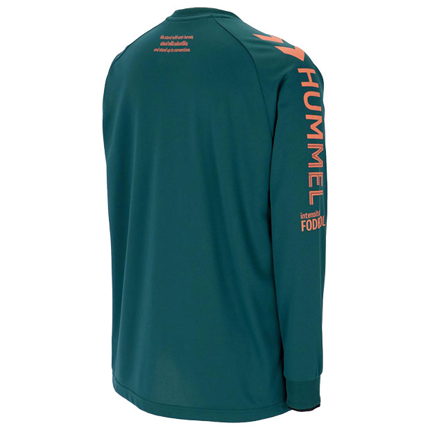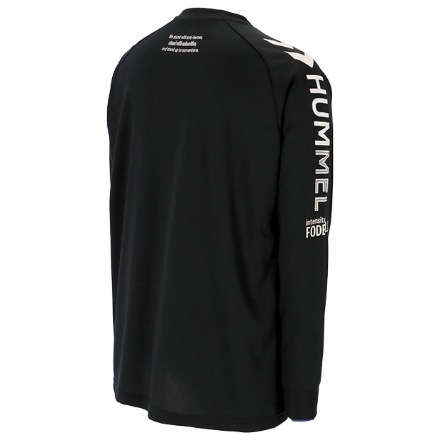 ロゴグラフィックが特徴的な長袖プラクティスシャツ。