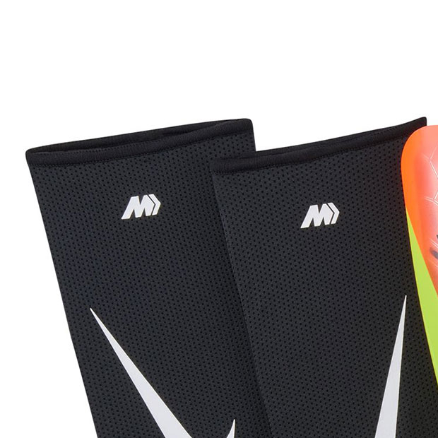 カバー力、優れたクッショニング、衝撃拡散力が一体となった、超薄型デザインのサッカーレガース。