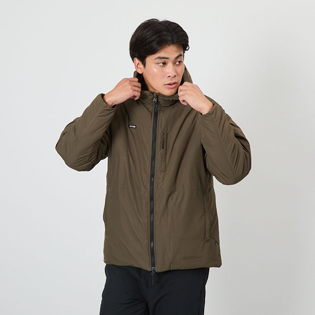 光沢を抑えたマットな質感の中綿ジャケット。移動着や普段着としても活躍する、すっきりとしたハーフ丈シルエットタイプ。軽量な撥水リップストップウーブン素材を採用。フロントはダブルファスナー仕様。