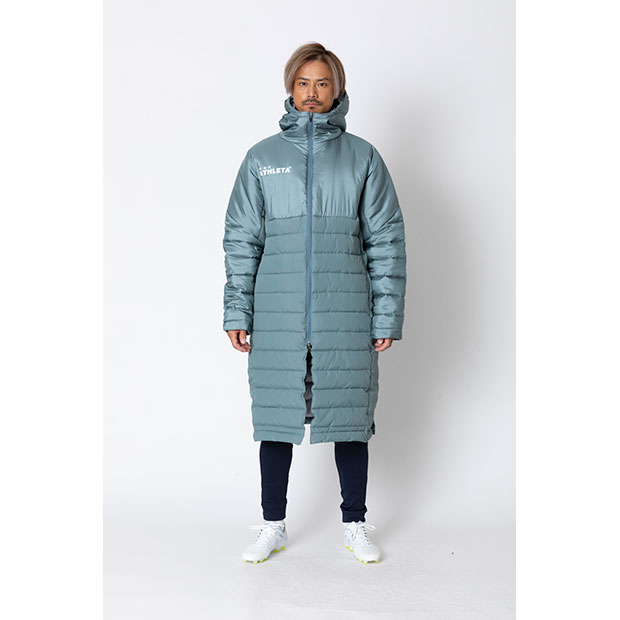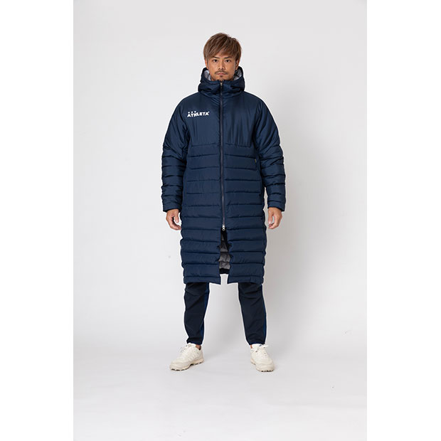 防寒性に優れた中綿仕様のベンチコート。冬の移動時や試合観戦時に活躍。