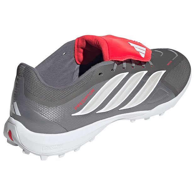 正確さが結果を生む。足元のボールさばきの精度を向上させるために設計されたサッカーブーツ、ターフトレーニングモデル。フォールディングタン仕様。テキスタイル素材をベースにコーティングを施すことで耐久性を向上し、快適さと柔らかなボールタッチに貢献するハイブリッドフィール設計。ストライクゾーンへ戦略的に配置したのフィンがボールとのグリップ力を高め、正確なシュートに貢献。人工芝コート対応。