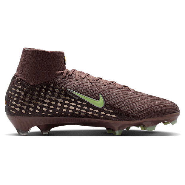 爆発的な加速力で他のプレーヤーを圧倒するマーキュリアルシリーズ、天然芝グラウンド対応ステートメントモデルスパイク、ハイカット仕様。マイクロモールディング加工のテクスチャーとGripknitにより、スパイクが足にフィットし、ボールタッチの精度が向上。連なったスタッズが波状のトラクションパターンを形成。Air Zoomユニットとの接触面積を拡大するとともに、最適なグリップ性も実現。アッパー全面にFlyknit、サイドに軽量なAtomknitを使用し、スピードと軽量性を追求。伸縮素材を使用したDynamic Fitの履き口により、足首を優しく包み込みしっかりとした履き心地を提供。