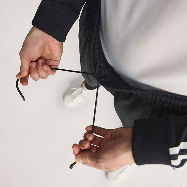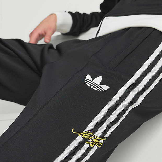 アウェイユニフォームの配色からインスパイアされたデザインのトラックパンツ。アイコニックなトレフォイルロゴがスポーツウェアのレガシーを象徴。レギュラーフィット仕様。