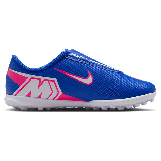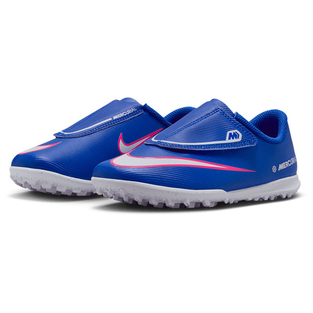 爆発的な加速力で他のプレーヤーを圧倒するマーキュリアルシリーズ、エントリーターフモデル。ベルクロ仕様。