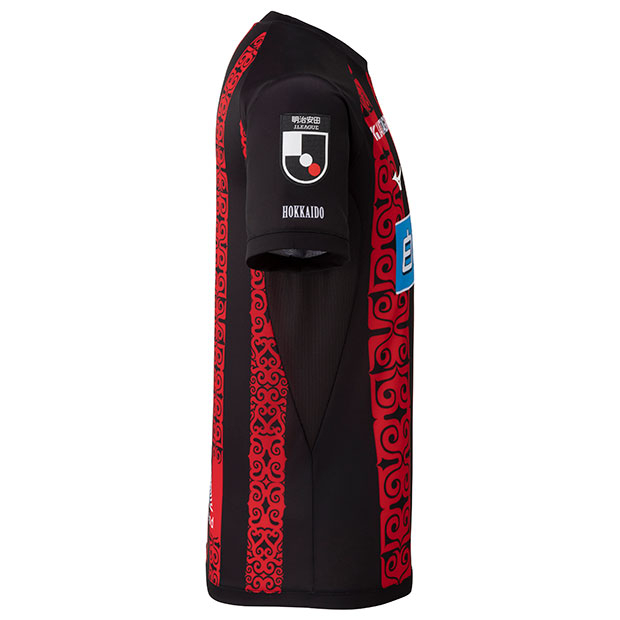 2026年明治安田百年構想リーグ着用ユニフォームのオーセンティックモデル。公益社団法人北海道アイヌ協会所属・早坂ユカ氏が描き起こしたスケッチから抽出した要素をストライプに再構築した、北海道を代表する「アイヌ紋様」を採用。「白い恋人」のグラフィックを組み合わせることで、「これぞ北海道」という印象を表現。大人/メンズ用。