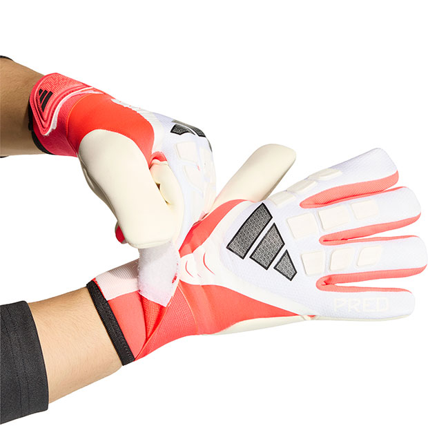 プレデターシリーズとのデザイン連動モデル。優れたグリップ力と衝撃吸収性を備えたモデル。URG 2.0テクノロジーがグリップ力と衝撃吸収性を両立。メカノバックハンドが快適性とパフォーマンスをサポートし、通気性・柔軟性・フィット感に優れた素材が動きに追従。フルラップ式リストストラップで手首のフィット感を調整可能。