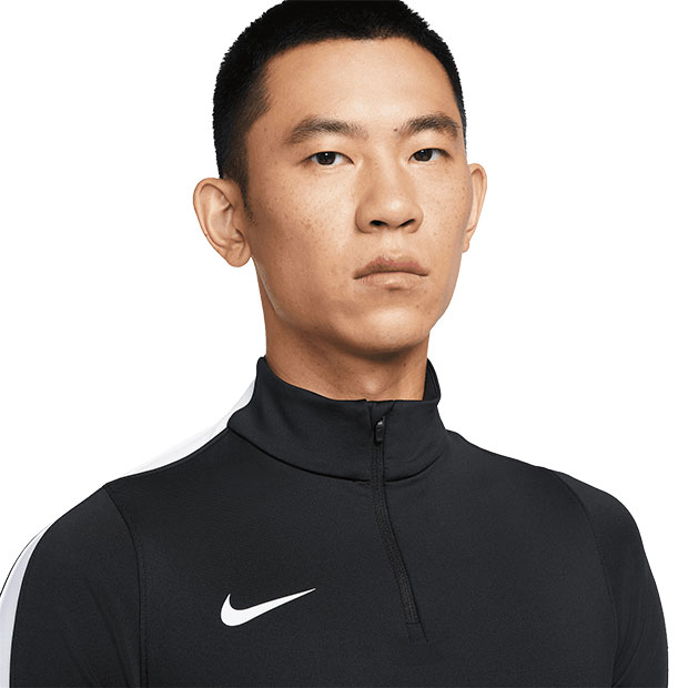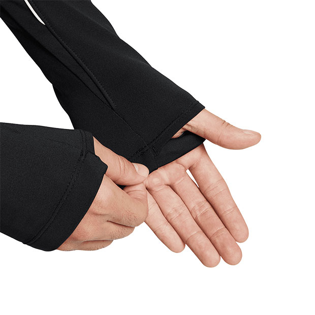 4方向に伸縮する滑らかなニット素材が体の動きに対応。肩はメッシュパネル仕様。サムホールでしっかりカバーしながら運動中の袖のずれを防止。Dri-FITテクノロジーが、肌から汗を逃がしてすばやく蒸発させ、さらりと快適な状態をキープ。