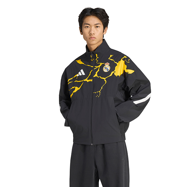 選手が試合前入場時に着用するトレーニングジャケット。MARVEL「アベンジャーズ」とのコラボモデル。リップストップ生地が耐久性と快適さを提供。ハイテクなデザインのドローコードとジップを搭載。アイコニックなラインからインスピレーションを得たマットラバープリント仕様。ルーズフィット仕様。