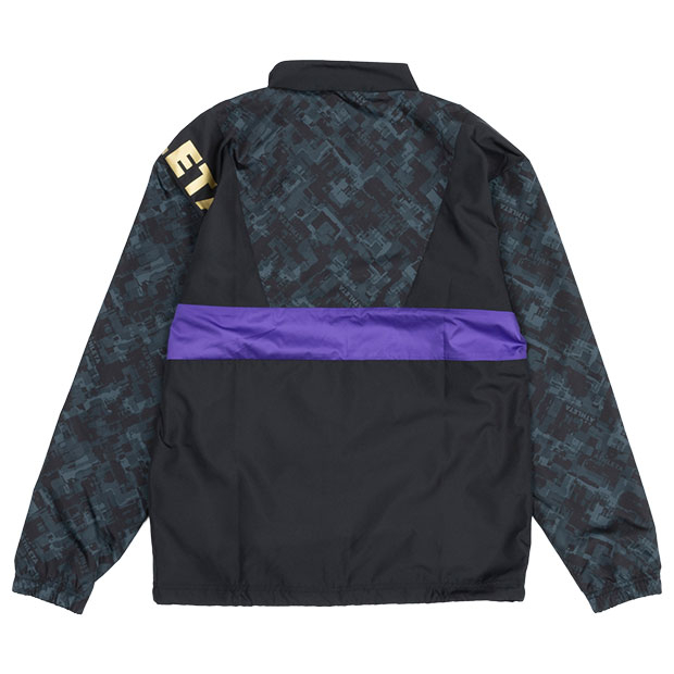 裏地付き仕様のウインドブレーカージャケット。ゴールドのロゴがおしゃれなこだわりのアイテム。冬の移動時やトレーニング時に活躍。