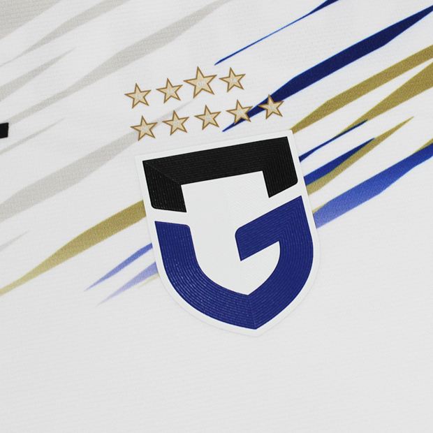 2026年明治安田百年構想リーグ着用ユニフォームのレプリカモデル。ガンバ大阪の象徴でもあるストライプを再解釈。より太くしたラインを右肩上がりに配置し、ブルーとゴールド、シルバーが重なり合うことで、よりアグレッシブな印象。大人/メンズ用。