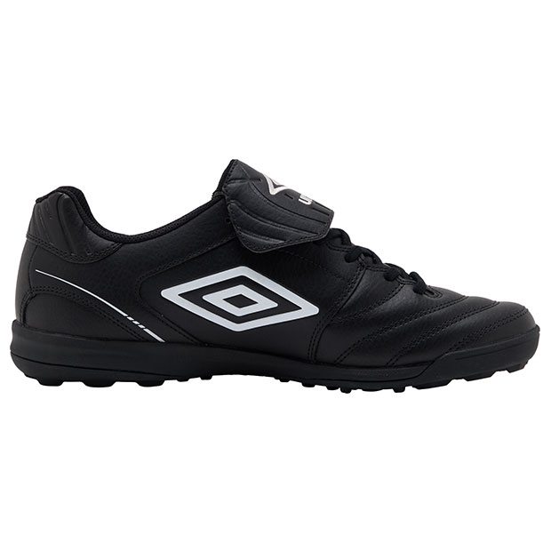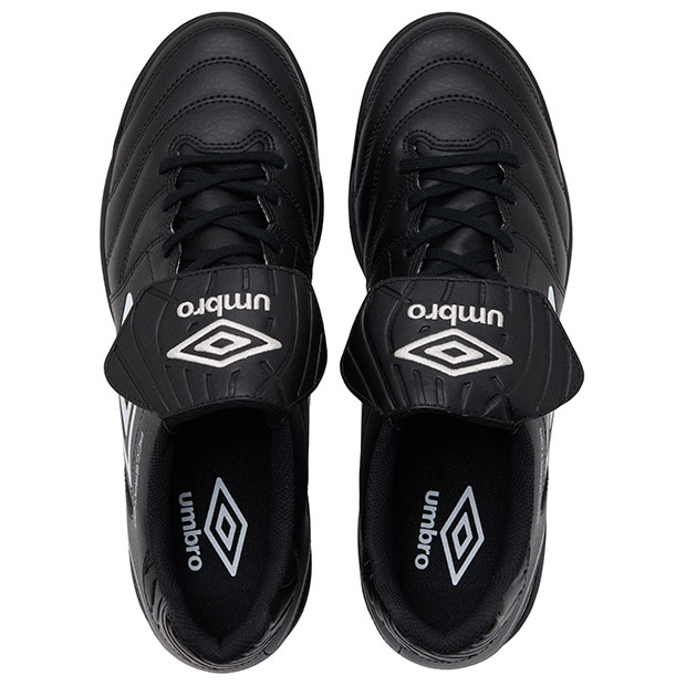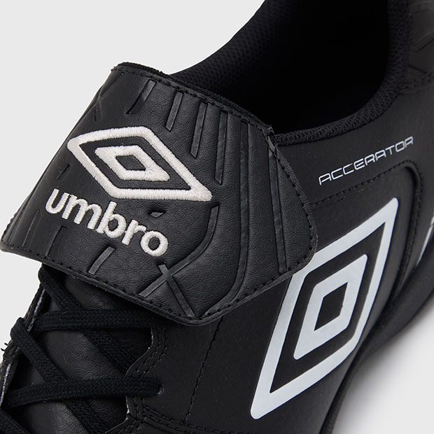 「ACCERATOR」シリーズのターフトレーニングシューズ。日本国内企画のラストを搭載。かかと周りにカウンター補強を行うことでフィット感をアップデート。接地から蹴りだしまでをスムーズにできるようにスタッドの位置や形状を設計したアウトソールを搭載。シューホールの位置やバンプの長さを見直すことで、ワイド設計でありながら、プレイ中のフィット感をアップデート。アッパーには足馴染みの良い柔らかい素材を採用。クッション性・反発性を考慮したミッドソールを搭載。アンブロのロゴをシュータンに刺繍で大胆に表現した、クラシックなイメージを彷彿させるロングシュータン仕様。
