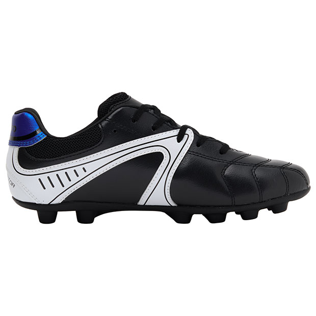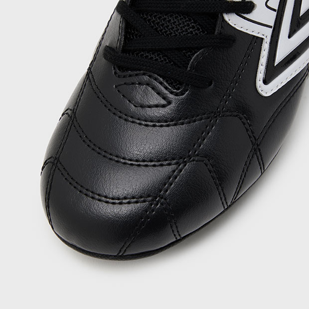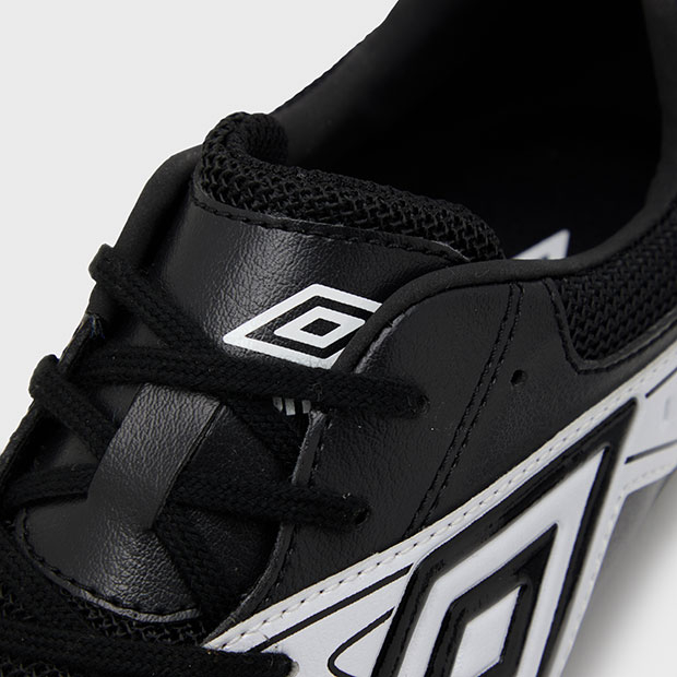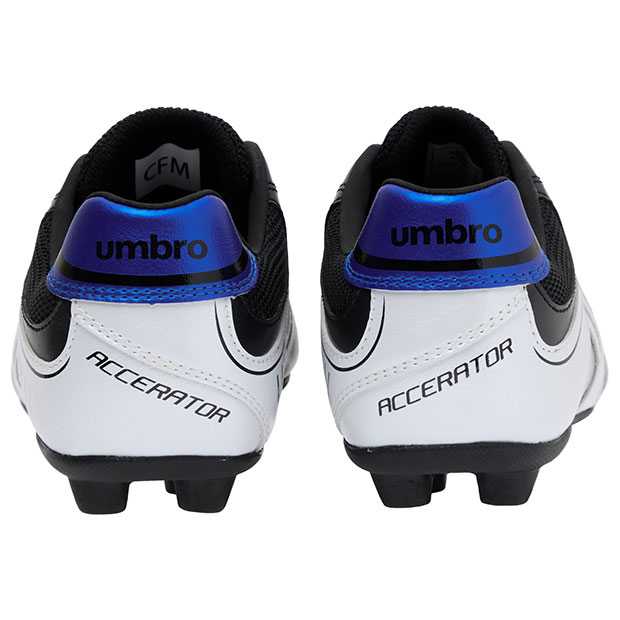「ACCERATOR」シリーズのスタータープレーヤー向けモデル。日本国内企画のラストを搭載。アンブロが持つフィッティングサポートファンクションのAフレームを補強パーツとして採用することで、中足部から後足部にかけてのホールド感と安定性をサポート。ジュニア世代の足への負担を考えたクッション性のあるラバー製スパイクソールを搭載。アッパー材全体に耐久性のある合成皮革を採用。前足部のステッチは足あたりに考慮した配置。地面からの突き上げを感じやすい踵部分に衝撃緩衝材「U/メモリーF」を搭載。シューホール位置を見直し、フィット感に考慮した設計を採用。取り外し可能なEVAインソールを搭載。