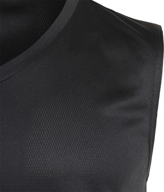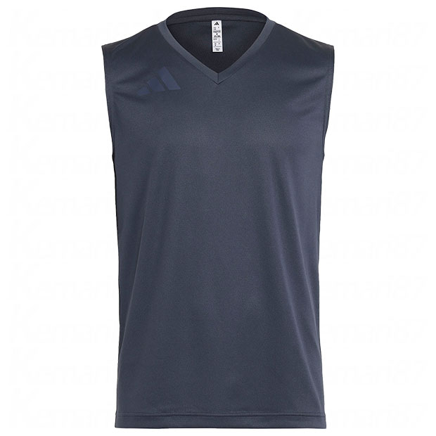様々なスポーツに対応した、ワンポイントロゴデザインのノースリーブインナーシャツ。Vネック仕様。レギュラーフィット仕様。
