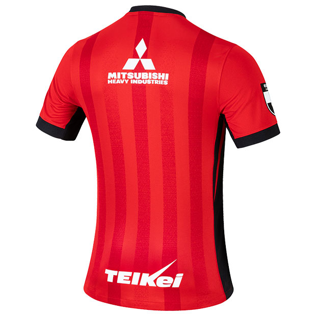 2026年明治安田百年構想リーグ着用ユニフォームのレプリカモデル。伝統の赤を継承した縦に走るストライプ柄のユニフォームを身に纏い、半年間の特別な舞台で勝利を掴む。大人/メンズ用。