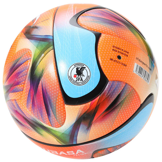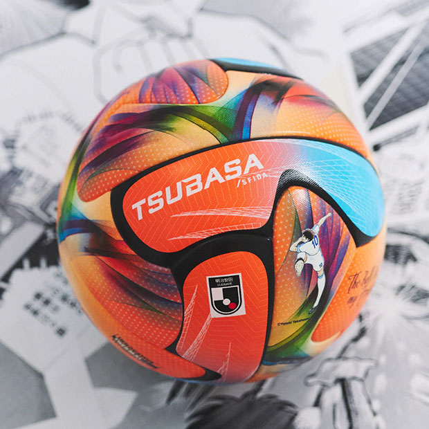 「明治安田Jリーグ百年構想リーグ」公式試合球、別カラーモデル。キャプテン翼とのコラボレーションライン「TSUBASA by SFIDA」。キャプテン翼の象徴である大空翼の必殺シュートをイメージした、美しい軌道を描いて進む「翼」をモチーフとしたデザイン。高橋陽一先生描き下ろしの大空翼をデザインを採用し、TSUBASA by SFIDAならではの世界観をより強く表現。最高品質のマイクロファイバーPUレザーを採用。特別なサーマルボンディング製法とオリジナルの均一な12パネル構造で、優れた真球性と安定した飛行軌道・精度の高いコントロール性能を発揮。