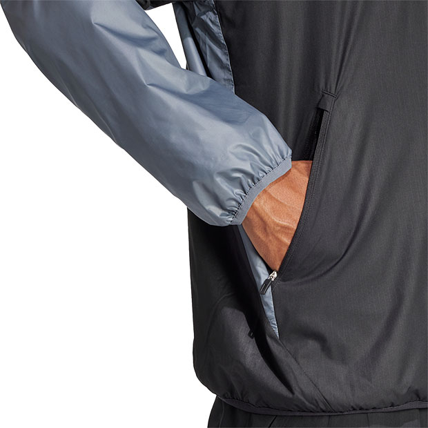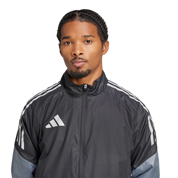 アイコニックなTIROシリーズからインスパイアされたウインドトップ。素材に軽量リップストップ生地を採用した、悪天候にも耐える仕様。伸縮性のあるカフとスタンドカラーで冷気を遮断。便利なジップポケット付き。スリーストライプスと3バーロゴはリフレクタープリント仕様。レギュラーフィット仕様。
