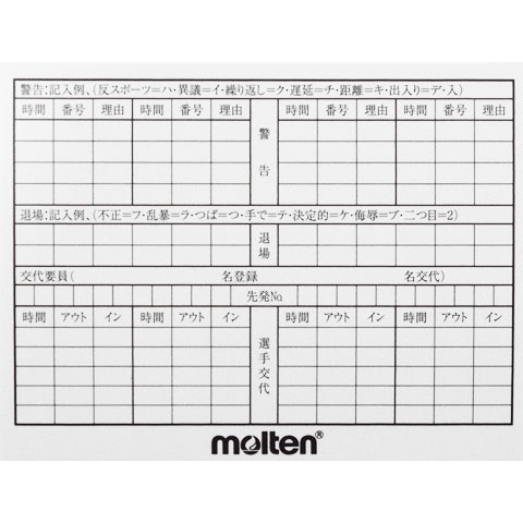 サッカー用審判記録カード