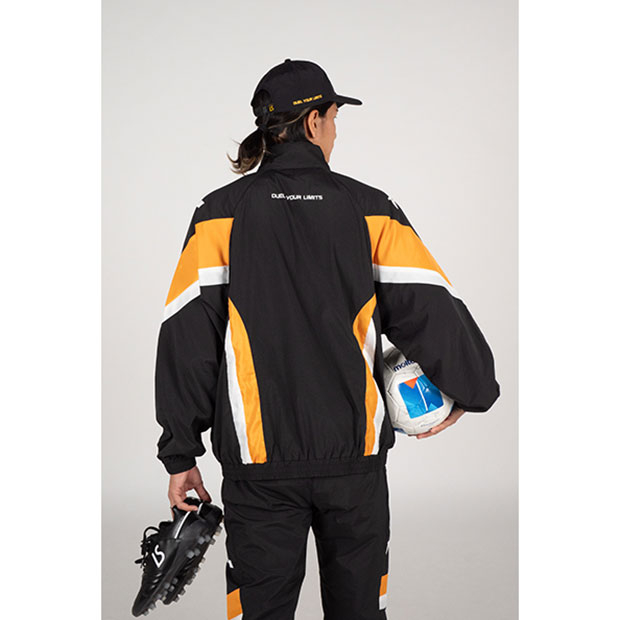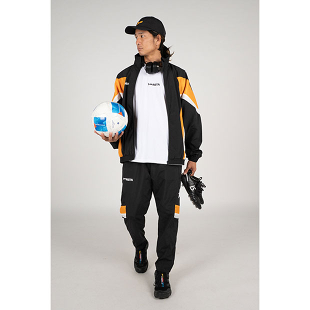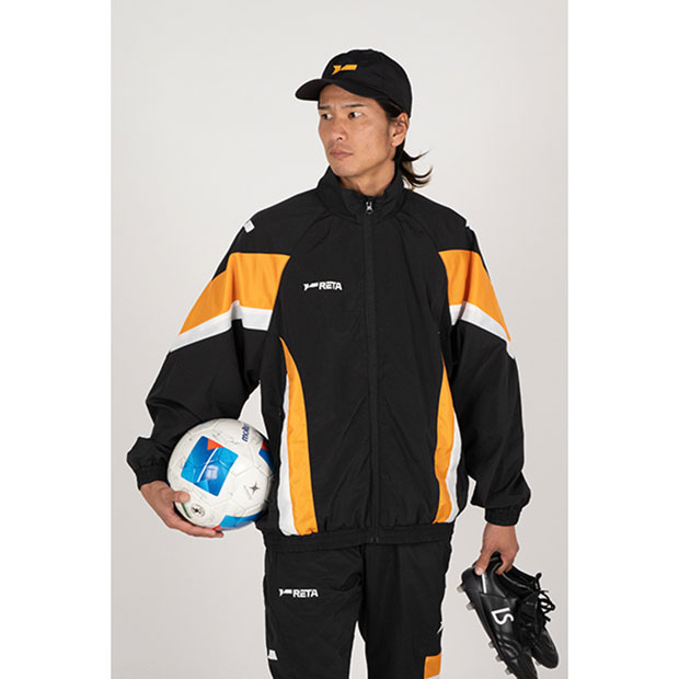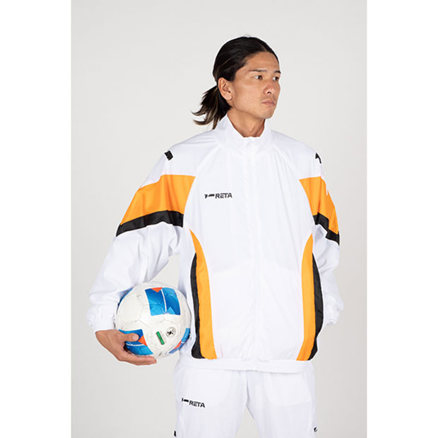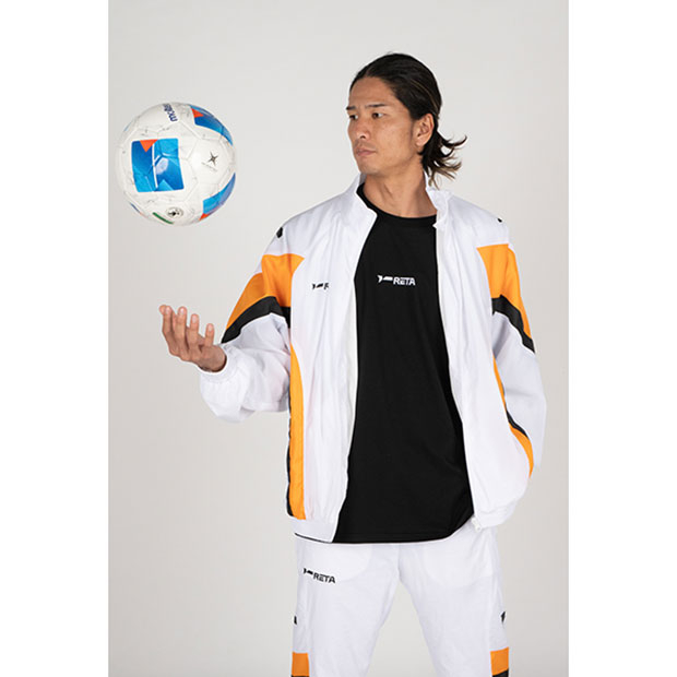 「DUEL YOUR LIMITS(自分の限界と戦う・限界への挑戦)」がコンセプトの、常に向上心を持ってフットボールに臨むアスリートプレイヤーに送る「RETA」カテゴリー。ナイロン素材を使用したクラシックなトラックジャケット。リバイバルのような雰囲気に仕上げた一着。