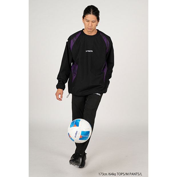 「DUEL YOUR LIMITS(自分の限界と戦う・限界への挑戦)」がコンセプトの、常に向上心を持ってフットボールに臨むアスリートプレイヤーに送る「RETA」カテゴリー。防風性と耐久性を追求したタフタ素材を使用。屋外でのアップ着に最適な一着。