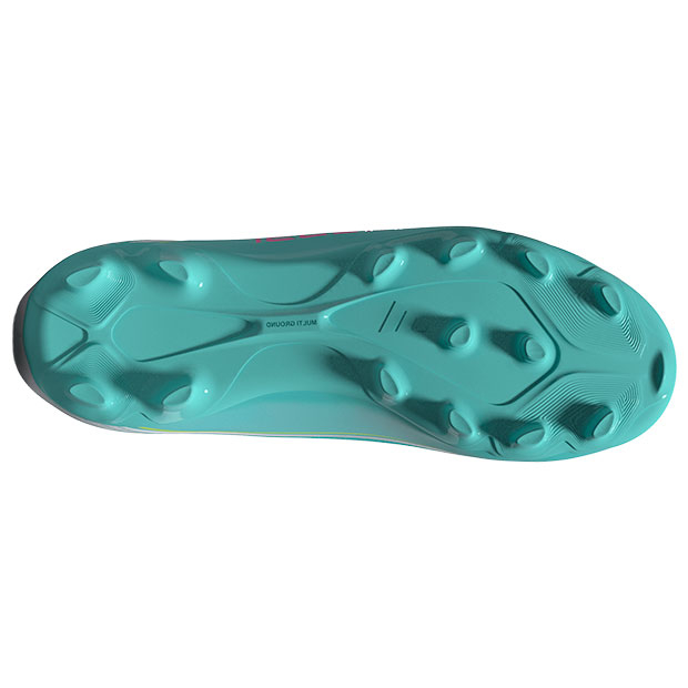 アディダスのアイコニックなスピードコンセプトモデル「F50」のジュニアサッカースパイク、メッシ選手シグネチャーモデル。3Dラインを戦略的に配置したファイバースキンアッパーを採用。パンチホールのある快適なシンセティックフローティングシュータンでさらなる通気性と軽量性を実現。土・ロングパイル人工芝グラウンド対応。