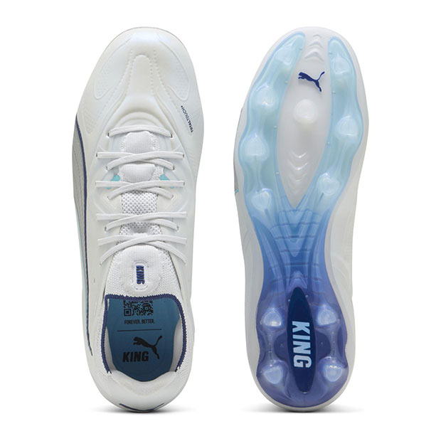 プーマのボールコントロールの技術を全て詰め込んだ、さらに優れた新世代のKINGシリーズ、アルティメットモデルスパイク。超ソフトなトータルタッチ+アッパーが、ボールとの一体感を向上。レーザーカットされたグリップゾーンと3Dテクスチャーがボールを確実にコントロール。取り外し可能な軽量ナノグリップソックライナーが足裏の快適性を向上。軽量PEBAアウトソールが、固い地面と人工芝の両方で安定性と敏捷性を実現。