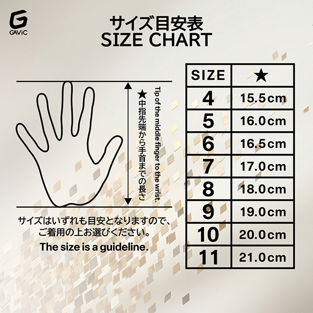 素材:パーム/吸(圧倒的グリップ力) バックハンド/ヒガキGRIP 内部/ノンスリップゲル