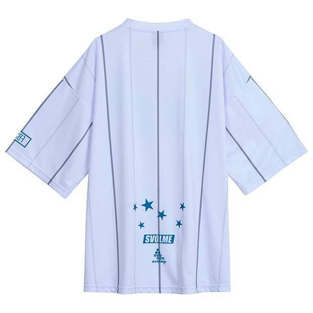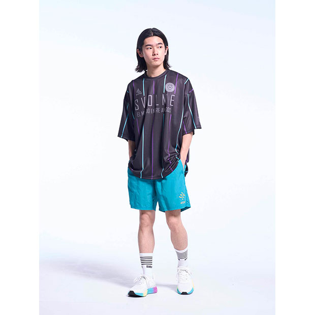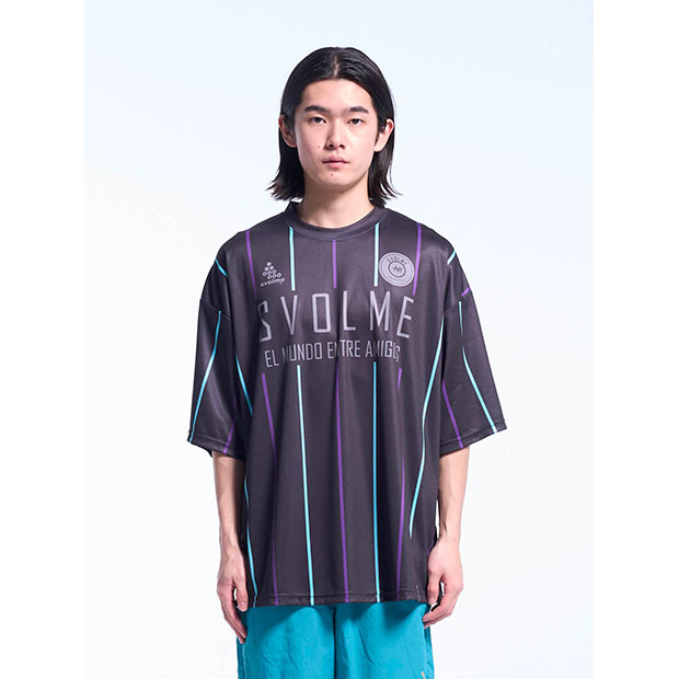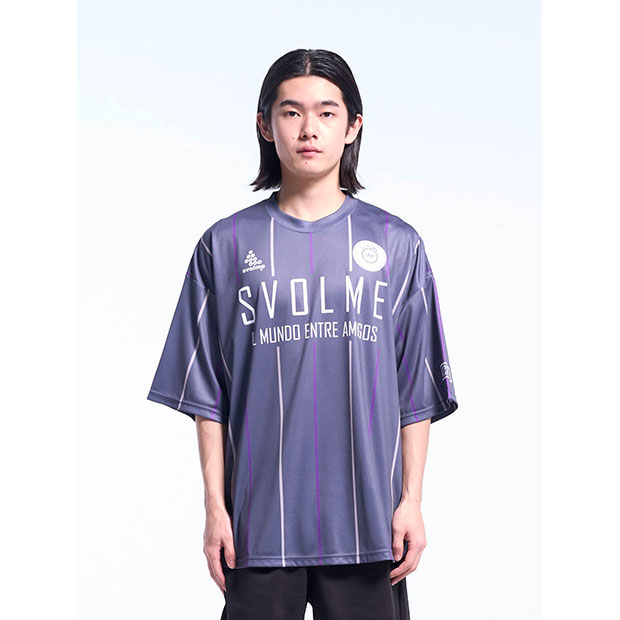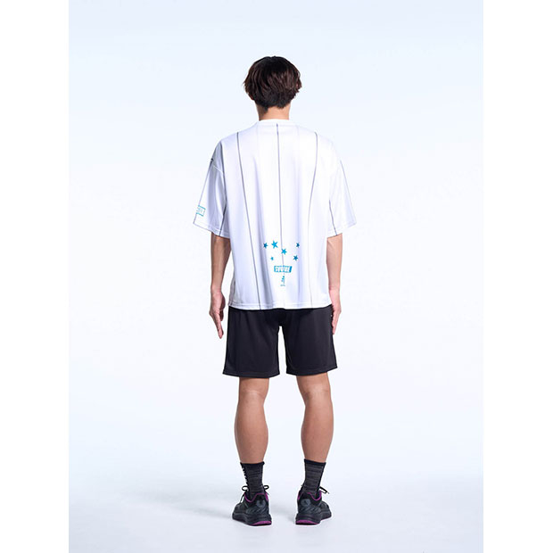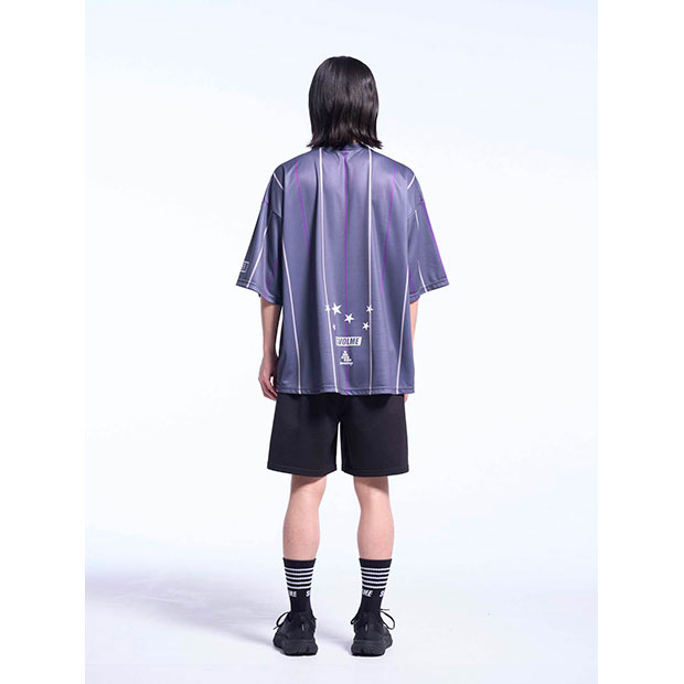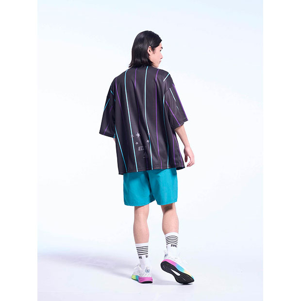 昇華プリントでオルタネイトストライプ柄を表現したショートスリーブシャツ。ビッグシルエット。