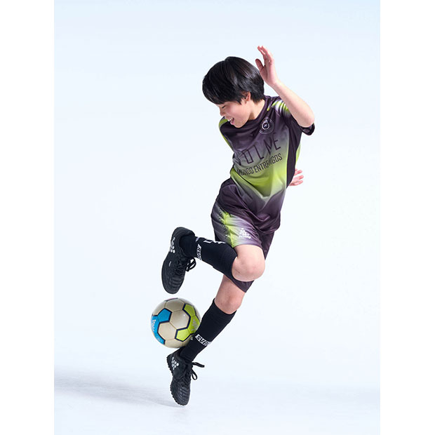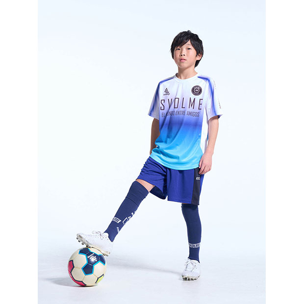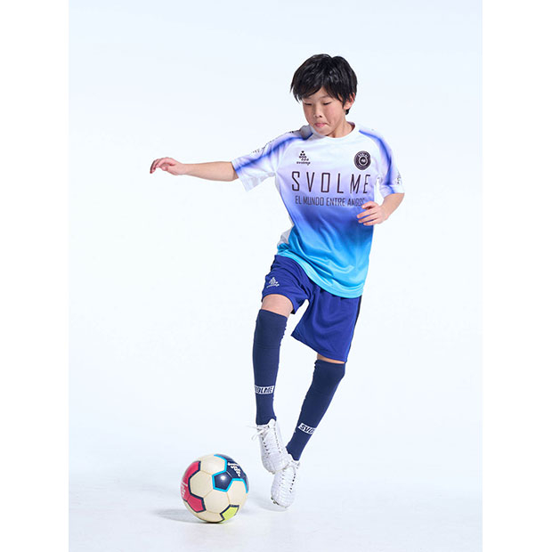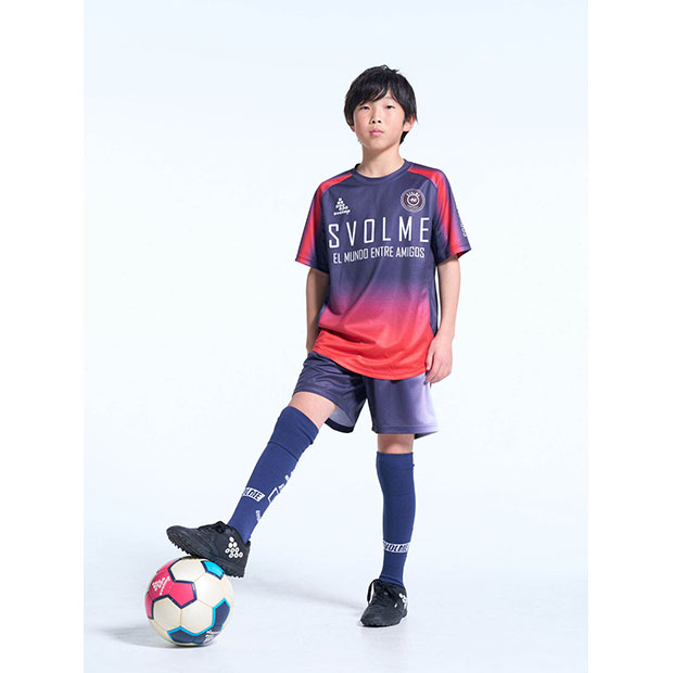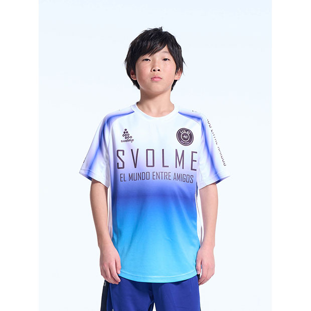 フットボールプレイヤーのためにデザインされたショートスリーブシャツ。滑らかなグラデーションがシャツ全体に広がり、動きのある印象や立体感を演出。