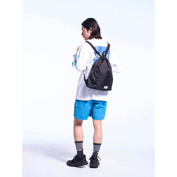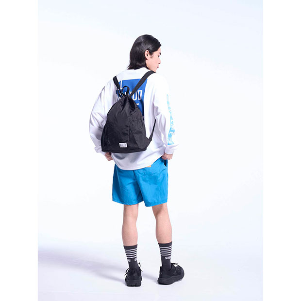 スポーツライフスタイルコレクション。スポーツだけでなく普段使いにもおすすめのナップザック。便利なサイドポケット付き。