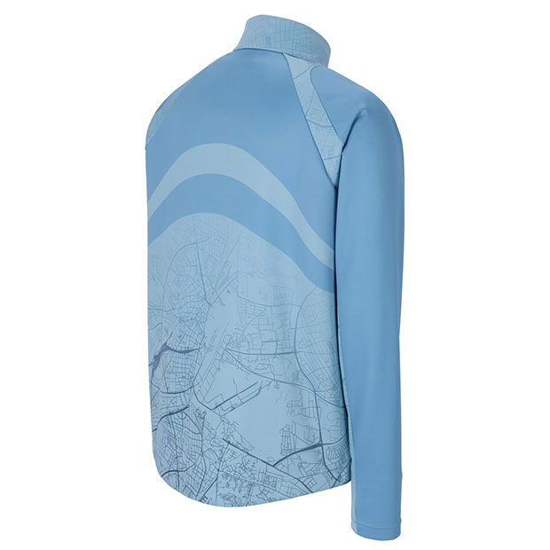 シンプルながらもシルエットやディテールにこだわった「FOOTBALL」アイテム。身頃にデンマーク(オーフス)の地図グラフィックを採用した、ゆったりとしたシルエットのハーフジップトップ。サムホール付き。