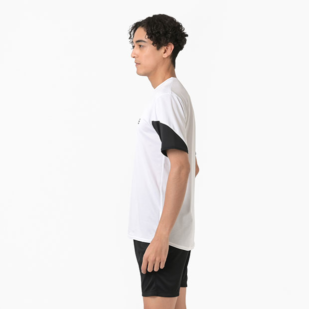 袖口のメッシュ切り替えデザインがアクセントになったショートスリーブシャツ。後身頃にピンメッシュを採用し通気性を確保。軽量でストレッチ性のある素材を使用。