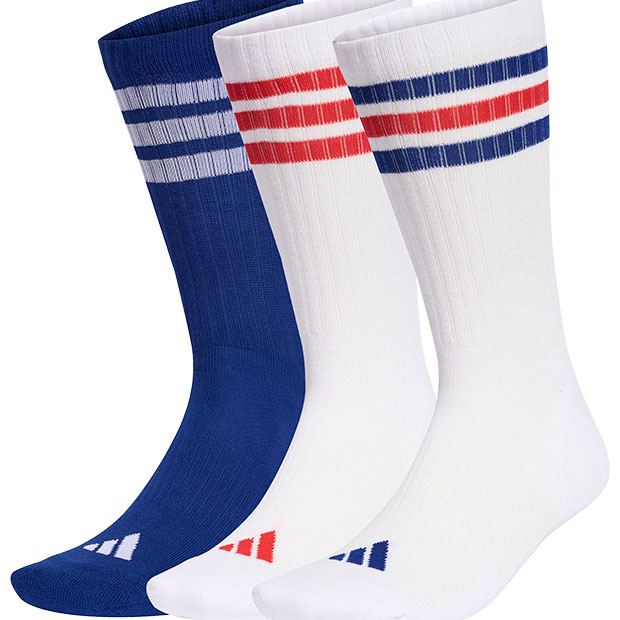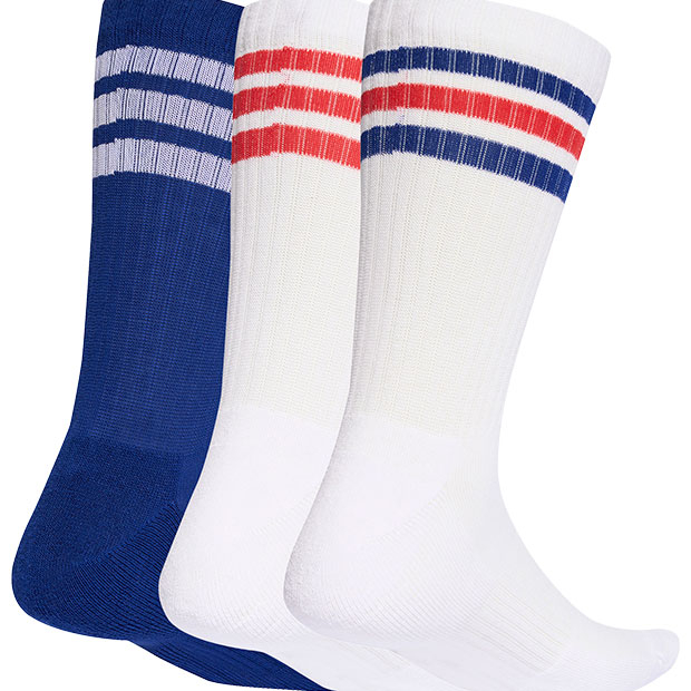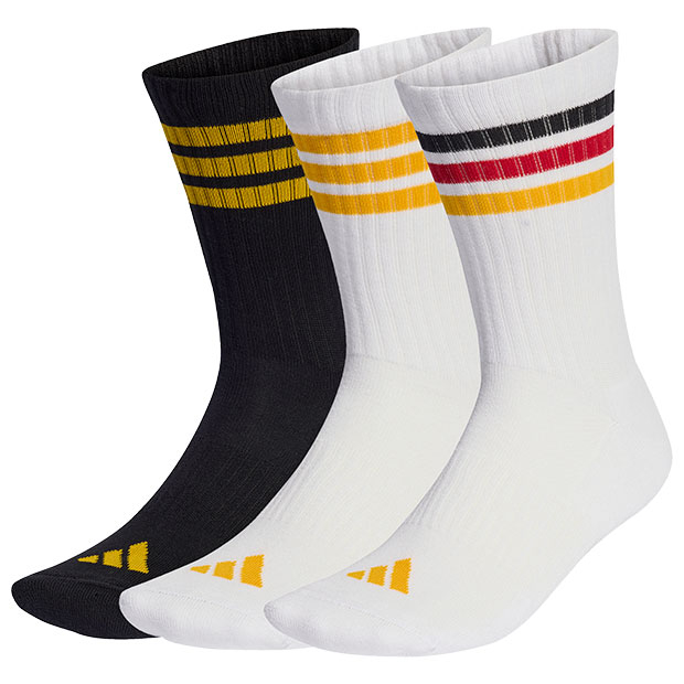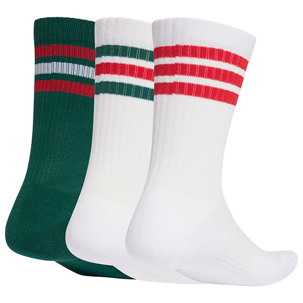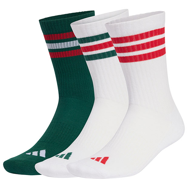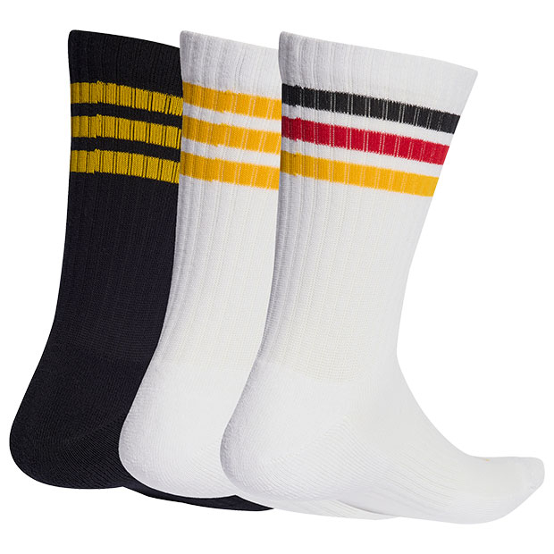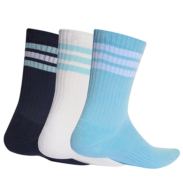 ソフトな履き心地を追求したクルー丈ソックス。スリーストライプスとエンジニアード3バーロゴが目を引くデザイン。3足組。