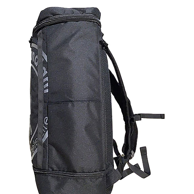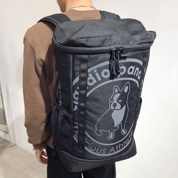 サークルロゴデザインが印象的なバックパック。効率的な収納が可能なボックス型シルエット。