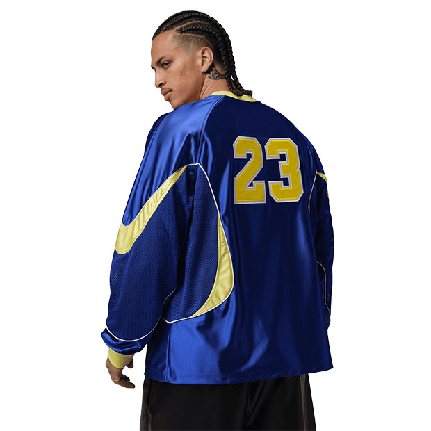 フィールドで活躍できるスタイルをストリート向けにアレンジした、ジョーダンブランド(Jordan Brand)とのコラボモデル。軽量のニット素材を使用した、ゆったりとしたフィット感のゴールキーパーシャツ。
