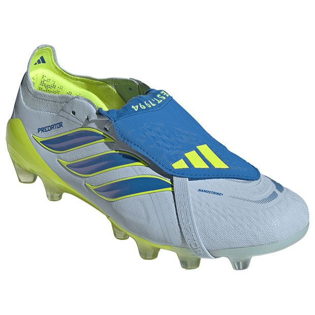 正確さが結果を生む。足元のボールさばきの精度を向上させるために設計されたサッカーブーツ、エリートモデルスパイク。フォールディングタン仕様。足の形に合わせて自在に伸びるニット素材「プライムニット」を履き口に採用し、快適な足入れとフィット感を実現。主要な接地面にクッション材を採用し、快適性とソフトなボールタッチをもたらすハイブリットタッチ設計。プレデターテクノロジーを戦略的に配置したストライクスキンが、シュートゾーンでのボールグリップを向上。硬さのあるハードグラウンドでの最適なグリップ性、耐久性に貢献する「HGトラクションフレーム」を搭載。アディダスフットウェアラボシュークリエーター・大森敏明氏とのコラボレーションによって、現代の日本のサッカープレーヤーに向けて開発された足型「ジャパンマイクロフィットラスト」を採用。足の形状を忠実に再現し、360°のフィット感、素足感覚を追求。土・ロングパイル人工芝グラウンド対応。