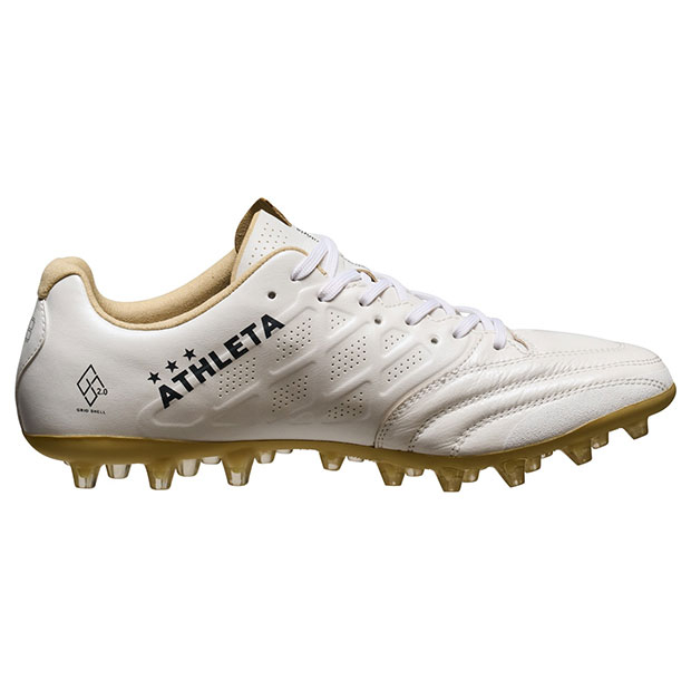 デザイン性と機能性を両立した「ORei」シリーズ。アッパーパターンの微調整でプロダクトとしての精錬度を高め、フィット感に更に磨きをかけたカンガルー皮革仕様のハイスペックモデル。柔軟性の高いカンガルーレザーにステッチワークデザインを加えることで、優れた快適性と堅牢性を実現。中足部のホールド性の更なる効率化と、前足部足囲のフィットアレンジを可能にする「Fit Shift」を搭載した、GRID SHELL 2.0モデル。かかとの収まるエリアはシンセティックヌバック素材仕様。人工芝での適切なグリップ性能と身体負担軽減を実現するMGソールを搭載。