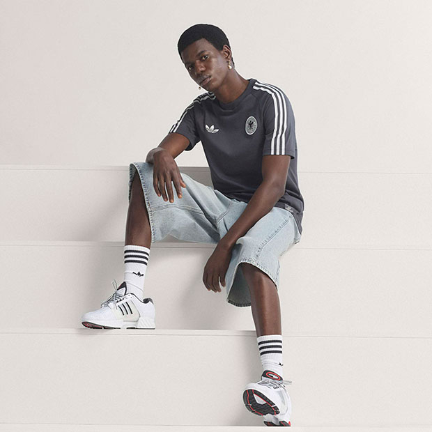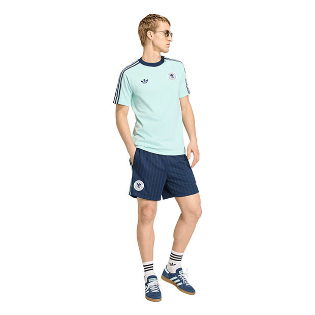 アウェイユニフォームの鮮やかなアクセントにインスパイアされた、サッカーカルチャーを日常として楽しむ人のためにデザインされた一着。アイコニックなトレフォイルロゴがスポーツウェアのレガシーを象徴。スリムフィット仕様。
