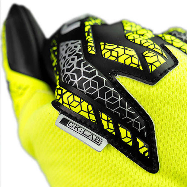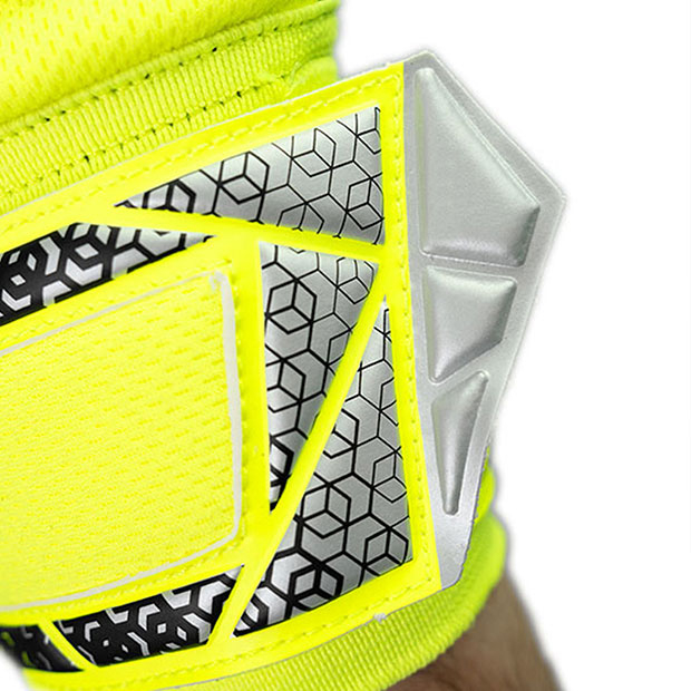 ネガティブカットにより、手が小さめの方でも高いフィット感が得られる。耐久性のあるパームで人工芝での使用も可能。