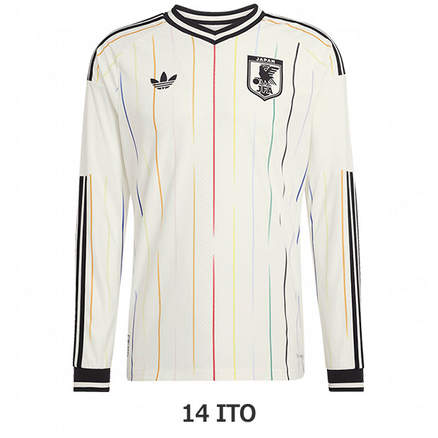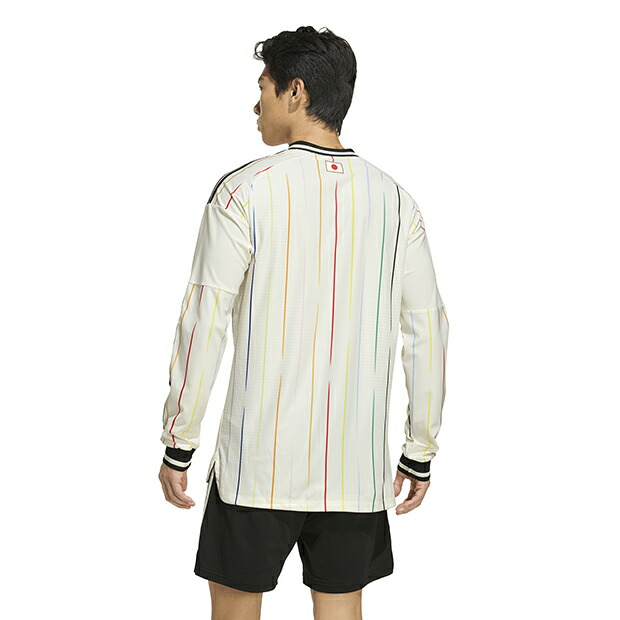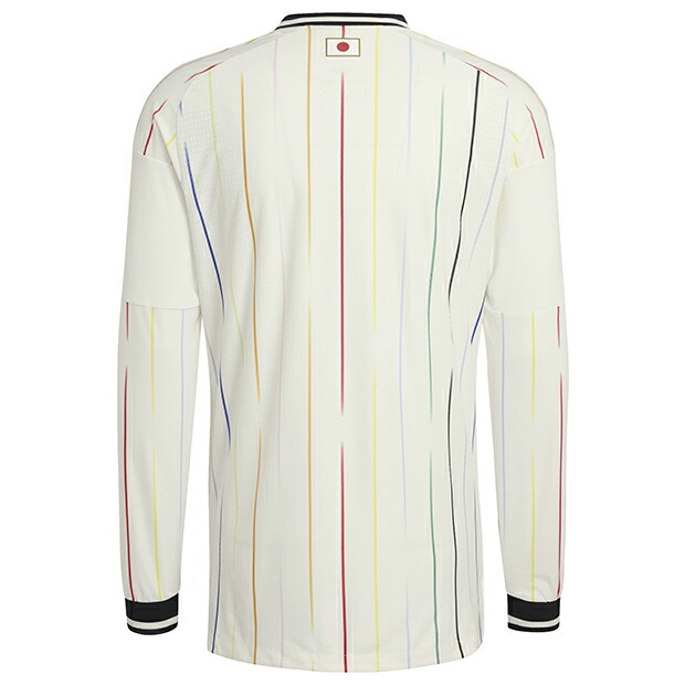 選手着用ユニフォームのオーセンティックモデル(コアなファンが応援・観戦に用いる選手着用モデルのユニホーム)。「Colors(水平線の向こう側のカラフルな景色)」をコンセプトに、12色の異なるカラーを採用。11色は選手を表し、鮮やかなグラフィックに施された中央の赤いストライプは、日本のサッカーファミリーの心を象徴。優れた設計と先進素材を組み合わせたCLIMACOOL+テクノロジーが、ドライで快適なコンディションをキープ。スリムフィット仕様。大人/メンズ用。