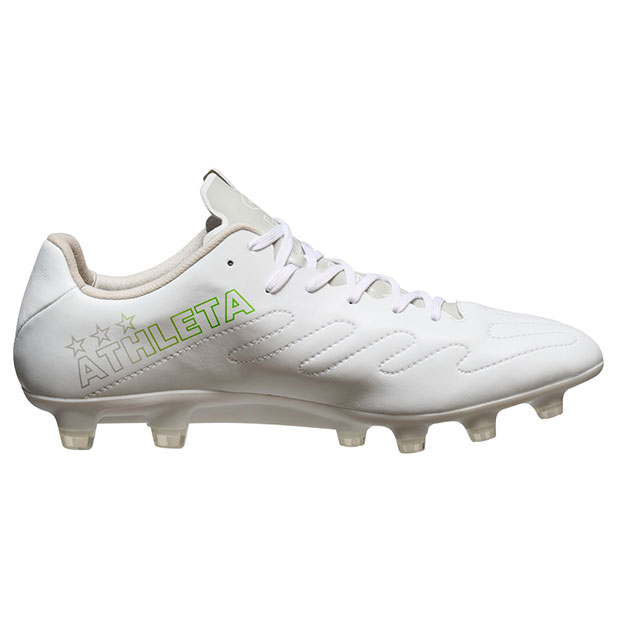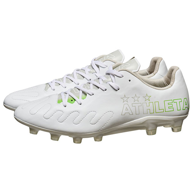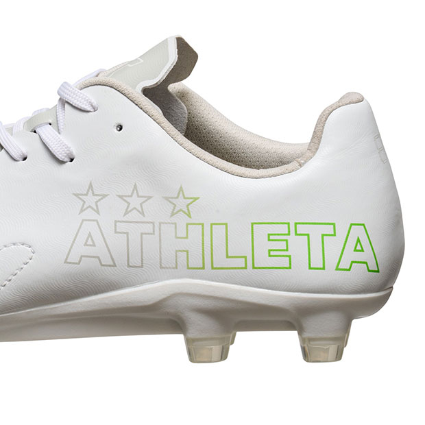 ミニマルを徹底した素材構成と独自のアッパーパターン形状で新たなパフォーマンスプロダクトの在り方を示す、アスレタ史上最軽量モデルスパイク。小指側のハトメ穴位置を改めた独自アッパーパターンを採用することで、指周りの圧迫を軽減し、シューズ内での指の可動を促し快適性とパフォーマンスを向上。柔軟性に富んだマイクロファイバー表面に、ボールタッチフィーリングを向上させる独自のONE STROKEステッチを採用。反発性と軽量性が特徴のPEBAXと耐久性に優れるPUのコンビネーションアウトソールを搭載。ヒール内側の必要な部分のみに採用したシンセティックヌバックエリアが、かかとに柔らかく接しながらも、高いグリップ性能を発揮。