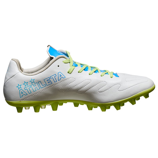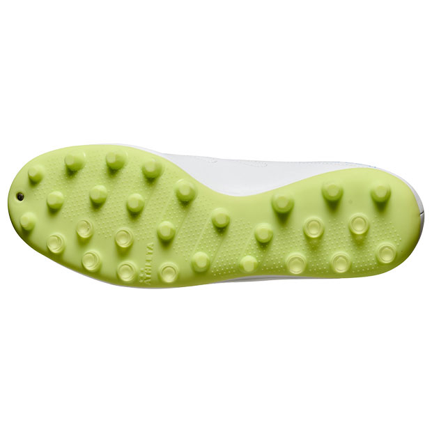 ミニマルを徹底した素材構成と独自のアッパーパターン形状による新たなスパイク、MGソール搭載モデル。小指側のハトメ穴位置を改めた独自アッパーパターンを採用することで、指周りの圧迫を軽減し、シューズ内での指の可動を促し快適性とパフォーマンスを向上。柔軟性に富んだマイクロファイバー表面に、ボールタッチフィーリングを向上させる独自のONE STROKEステッチを採用。ヒール内側の必要な部分のみに採用したシンセティックヌバックエリアが、かかとに柔らかく接しながらも、高いグリップ性能を発揮。接地から蹴り出しまでの足裏にかかる体重の移動を考慮したマルチグラウンドソールを搭載。