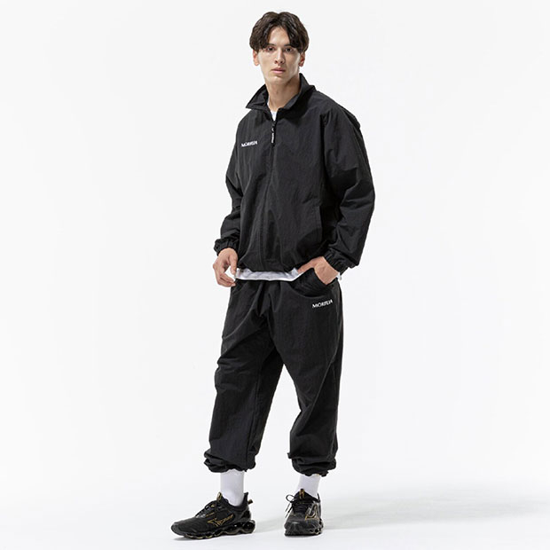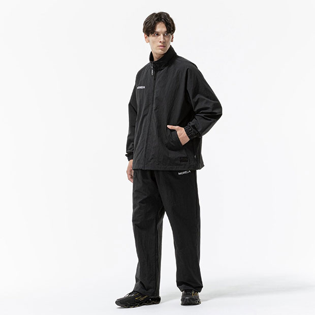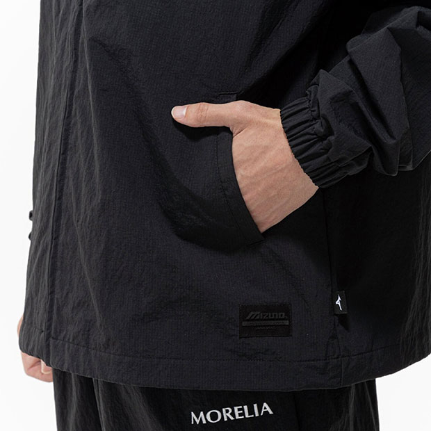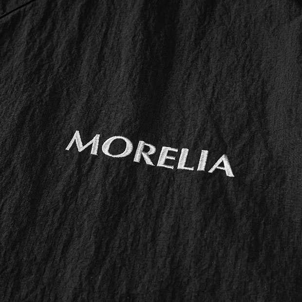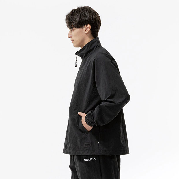 MORELIAシリーズのオフアパレルコレクション。レトロな風合いのリップストップ生地を使用したトラックジャケット。裾のスピンドルでサイズ調整が可能。裏地なし仕様。